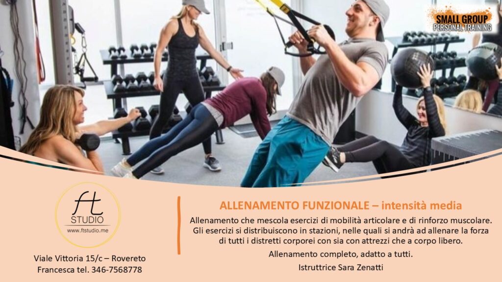 Gli Small Group Training sono piccoli gruppi di allenamento (minimo 2 – massimo 6 partecipanti) con un obiettivo comune (esempio: dimagrimento, incremento massa muscolare, miglioramento cardiovascolare, lavoro posturale, prevenzione infortuni, benessere generale). La lezione non è standard ma viene programmata e adattata in relazione alle singole persone presenti. In questo modo ci sarà una giusta progressione negli esercizi, la tecnica di esecuzione è attentamente supervisionata, prevenendo il rischio di infortuni.
