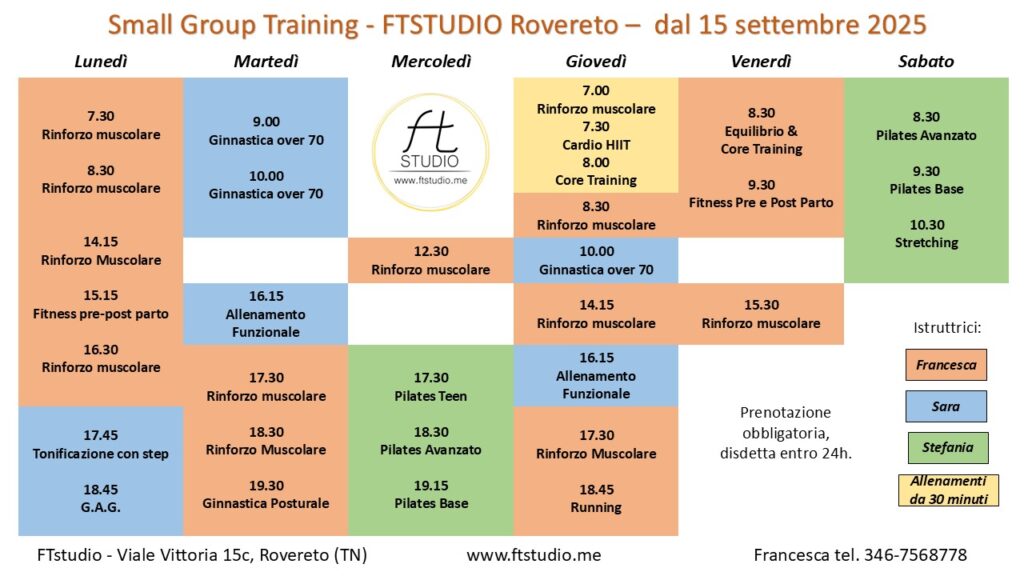 Programmazione settimanale a partire dal 15 settembre 2025 – corsi su prenotazione